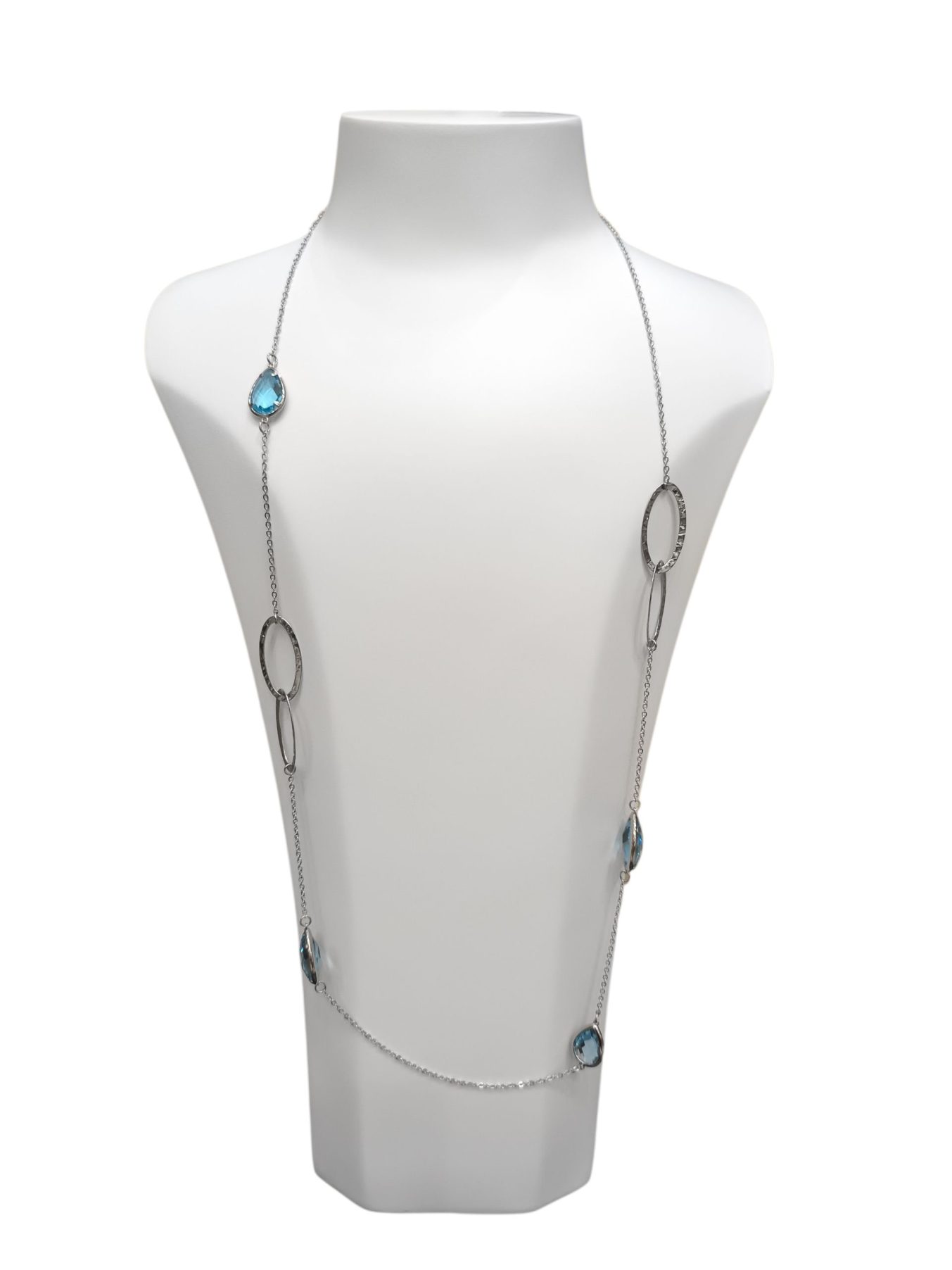 Ατσάλινο μακρύ κολιέ με κρύσταλλα σε γαλάζιο χρώμα και οβάλ στοιχεία μοτίφ.