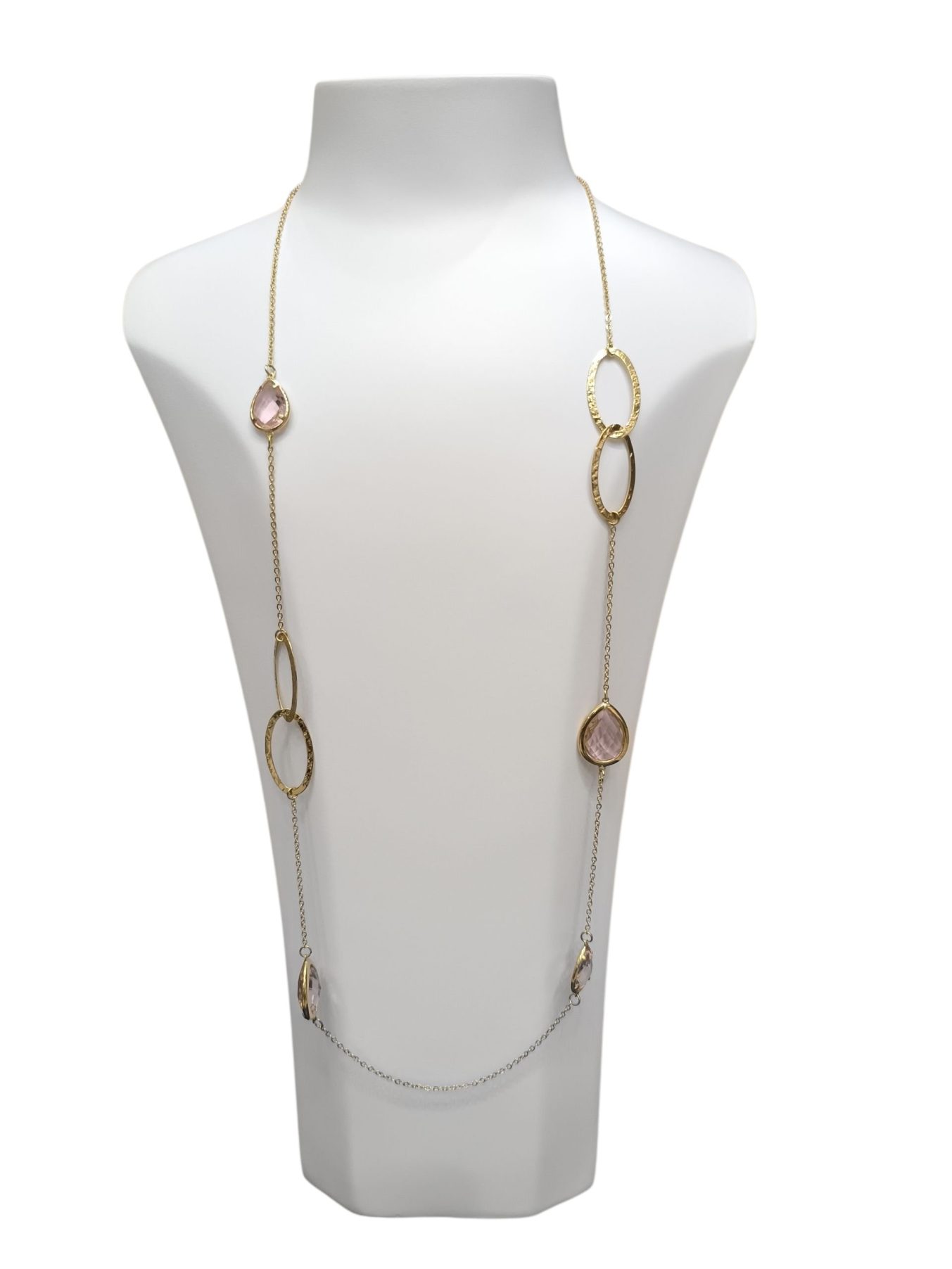 Ατσάλινο μακρύ κολιέ με κρύσταλλα σε ρόζ χρώμα και οβάλ στοιχεία μοτίφ.