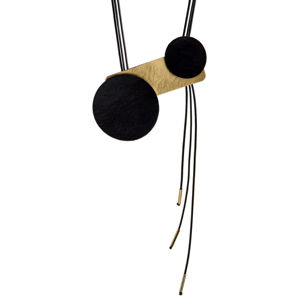 Χειροποίητο μακρύ κολιέ από ορείχαλκο και δερμάτινο κορδόνι.