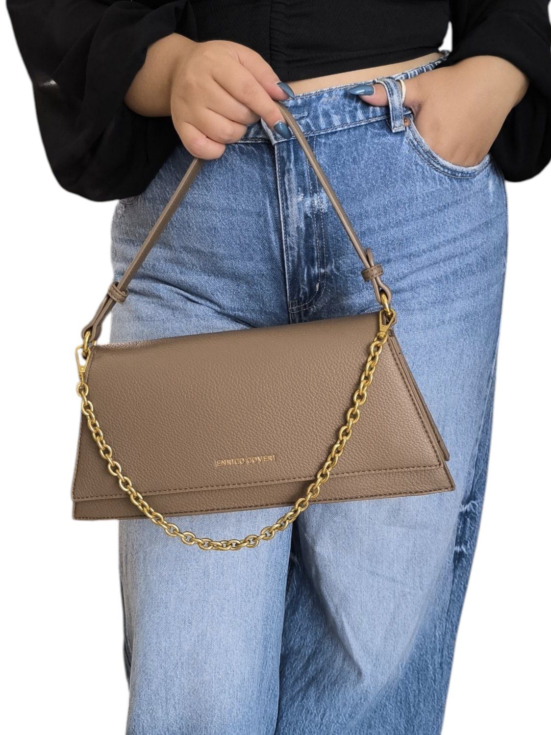 Τσάντα ώμου απο συνθετικό δέρμα εξαιρετικής ποιότητας .Κλείνει με καπάκι με μαγνητικά κλιπ και έχει διακοσμητική ,αποσπώμενη αλυσίδα σε χρυσή απόχρωση. Εσωτερικά διαθέτει μια μικρή θήκη με φερμουάρ και περιέχει και επιπλέον λουράκι για χρήση χιαστί.