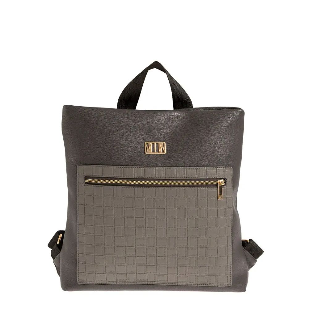 Γυναικεία τσάντα πλάτης από ανθεκτικό συνθετικό δέρμα με δύο υφές. Κλείνει με φερμουάρ και στο εσωτερικό της υπάρχουν τρία πλαϊνά βοηθητικά τσεπάκια, το ένα εκ των οποίων κλείνει με φερμουάρ. Στην μπροστινη όψη υπάρχει εξωτερική τσέπη με φερμουάρ και στην πίσω όψη επιπλέον τσέπη με φερμουάρ. Τα λουράκια της είναι από μαύρους ιμάντες με το λογότυπο.