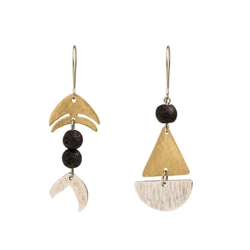 Χειροποίητα σκουλαρίκια Halfmoon abstract mint & bronze